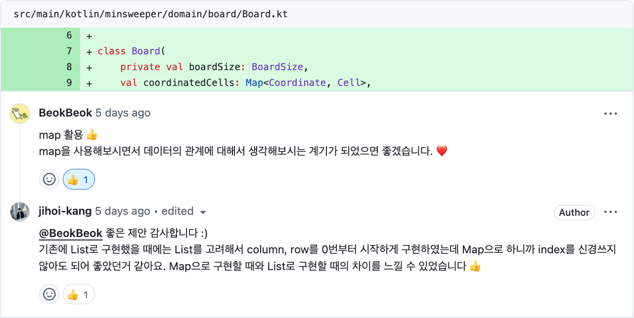 코드 리뷰를 통해 단순히 기능 구현에 만족하는 수준을 넘어 더 나은 코드 품질과 설계에 대해 고민 할 수 있었다. 몇가지 리뷰 받은 내용들을 소개해보겠다.